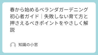 暮らし・日常の知恵 春から始めるベランダガーデニング初心者ガイド|失敗しない育て方と押さえるべきポイントをやさしく解説